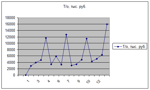 В течение 2009 года ежемесячный товарооборот был всегда выше базисного показателя, за который принят товарооборот за январь 2009 года. Наибольшее абсолютное отклонение от базисного показатель товарооборота достиг в мае и декабре 2009 года. Поэтому необходимо проанализировать факторы, повлиявшие на рост товарооборота в эти месяцы, скорее всего это праздник - рост товарооборота накануне 1 января 2009 года, а также перед сезоном отпусков (май 2009 года). Хотя товар и лишен ярко выраженной сезонности, но наблюдается в течение года всплеск роста товарооборота. Также значительный рост товарооборота по сравнению с базисным периодом наблюдался в ноябре – на 2304 тыс. рублей и декабре – на 3556 тыс. рублей.