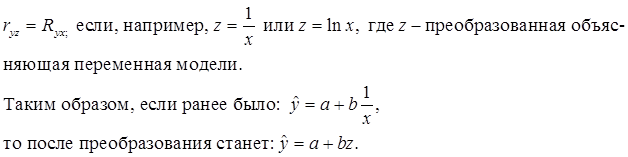 Иначе дело обстоит, если линеаризация связана с преобразованием результативной переменной у. В этом случае линейный коэффициент корреляции по преобразованным значениям признака числено не совпадает с индексом корреляции. Тем не менее, в большинстве практических случаев эти значения бывают достаточно близки.