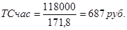 При известной месячной тарифной ставке ТСмес=118000 руб. и месячного фонда рабочего времени ФРВмес=171,8 ч. рассчитывается часовая тарифная ставка: