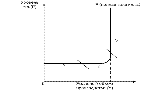 Естественный уровень безработицы иногда называют уровнем полной занятости, или нулевой безработицей. В таком определении подчеркивается, что данный уровень безработицы дает возможность достигать потенциального ВВП, т.е. ВВП при полной занятости. Графически его можно увидеть на вертикальной части кривой совокупного предложения (рис.1), характеризующей уровень полной занятости ресурсов в экономике, в том числе и трудовых ресурсов.