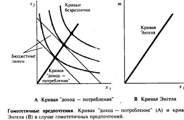 Пограничным является случай, когда спрос на товар растет в той же пропорции, что и доход. Именно это имело место в трех рассмотренных выше случаях. Какая же характеристика предпочтений потребителя обусловливает подобное поведение?
